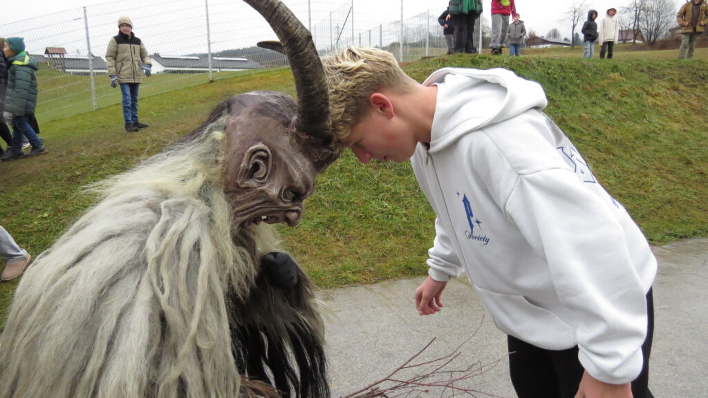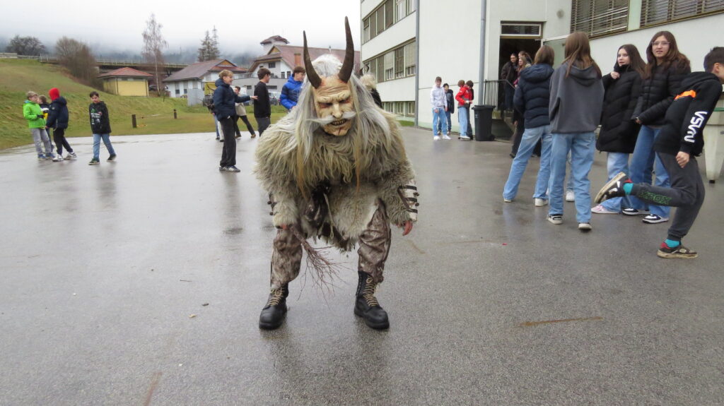 Grausame Masken, gruselige Kostüme, makabre Gestalten; am 5. Dezember statteten die Krampusse auch der Mittelschule Krieglach einen schaurigen Besuch ab. Schülerinnen und Schüler hatten nach der vierten Stunde die Gelegenheit, das österreichische Brauchtum auszuprobieren. Manch einer traute sich beim Kramperlstauben die bösen Kreaturen anzustiften, so dass diese sie über den Schulhof jagten. Ihr treuer Gefährte – der Nikolaus –konnte die Krampusse aber schnell wieder einfangen und sorgte für ein jähes Ende des aufregenden Spektakels.