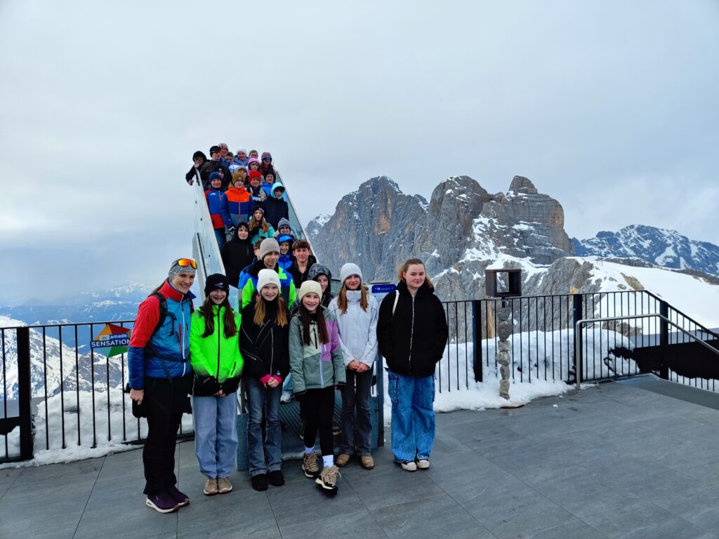 Ein besonderes Highlight war die Fahrt mit der Gondel auf den Dachstein, wo die Gruppe den beeindruckenden Eispalast besichtigte – ein Erlebnis, das sicher lange in Erinnerung bleibt. Auch abseits der Pisten kam der Spaß nicht zu kurz: Beim Kegeln am Abend und einem lustigen Hüttenabend mit tollen Beiträgen wurde viel gelacht und gemeinsam gefeiert.